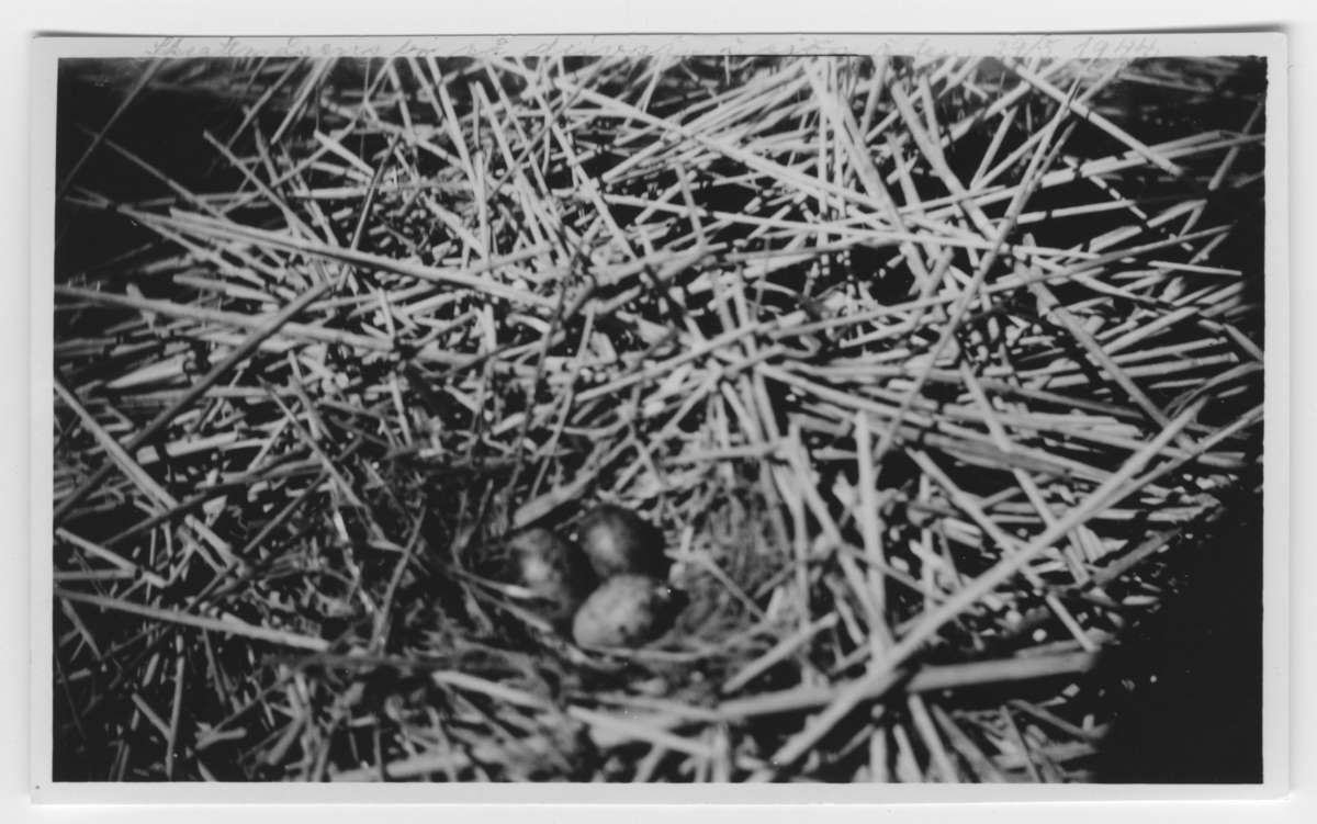 'Skrattmåsbo med 3 ägg, på drivsäv. :: :: Ingår i serie med fotonr. 4293-4301.'