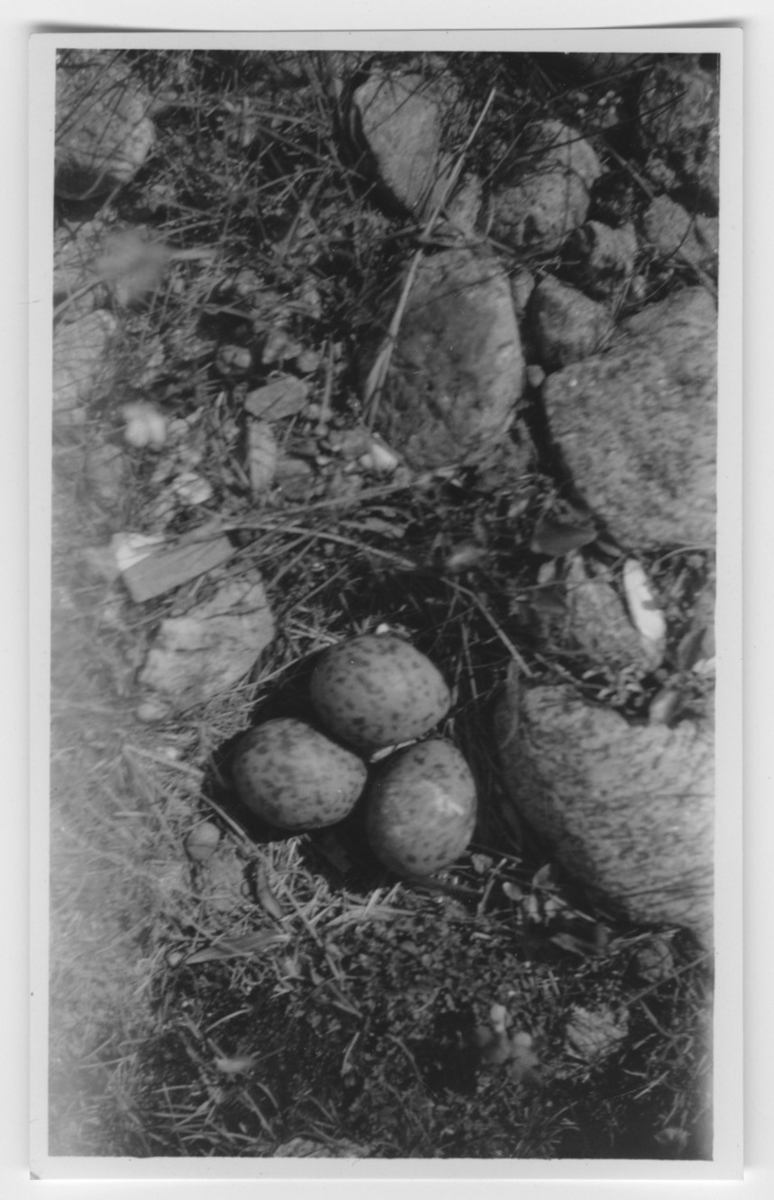 'Bo med 3 ägg liggande inrill stenblock. :: :: Ingår i serie med fotonr. 4401-4440.'