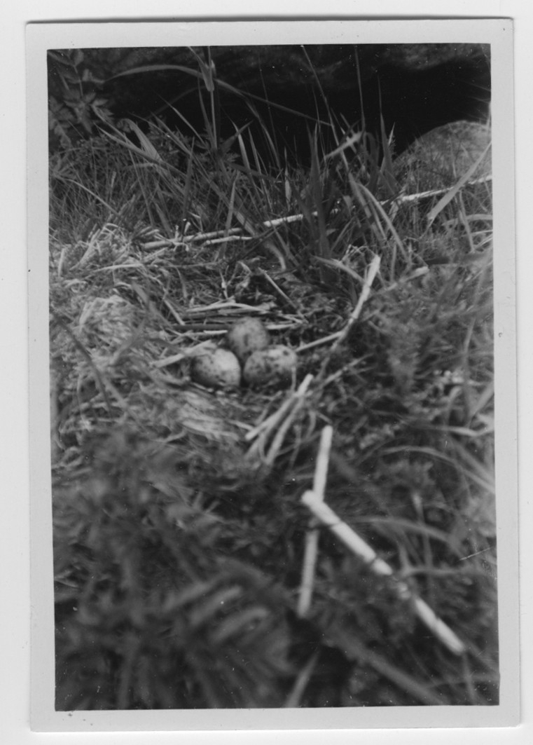 'Text enligt foto: ''Bo med 3 st ägg av fisktärnan i en koloni på 30 st par invid den stora skrattmåskolonien på ca 300 st par på sydvästra udden av Norra Kalvön.'' :: :: Ingår i serie med fotonr. 4500:1-172.'