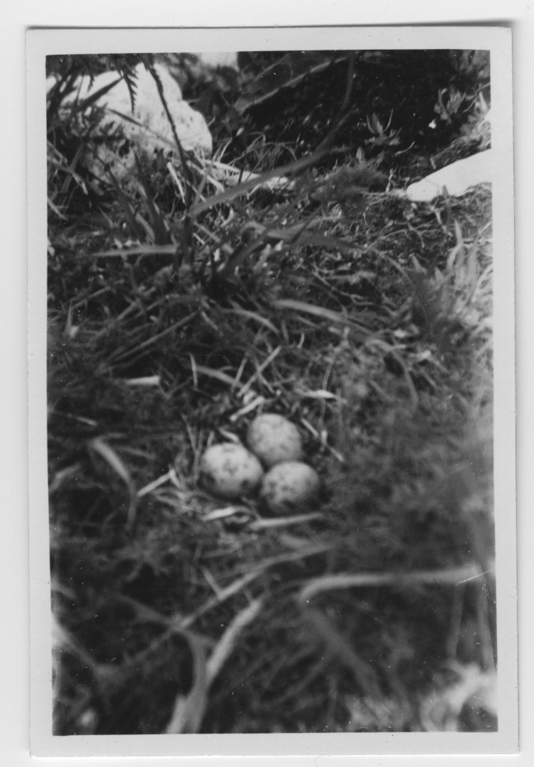 'Text enligt foto: ''Bo med 3 st ägg av fisktärnan. Kolonien bestod av ungefär 30 st bon. Fotot taget på 50 cm avstånd.'' :: :: Ingår i serie med fotonr. 4500:1-172.'