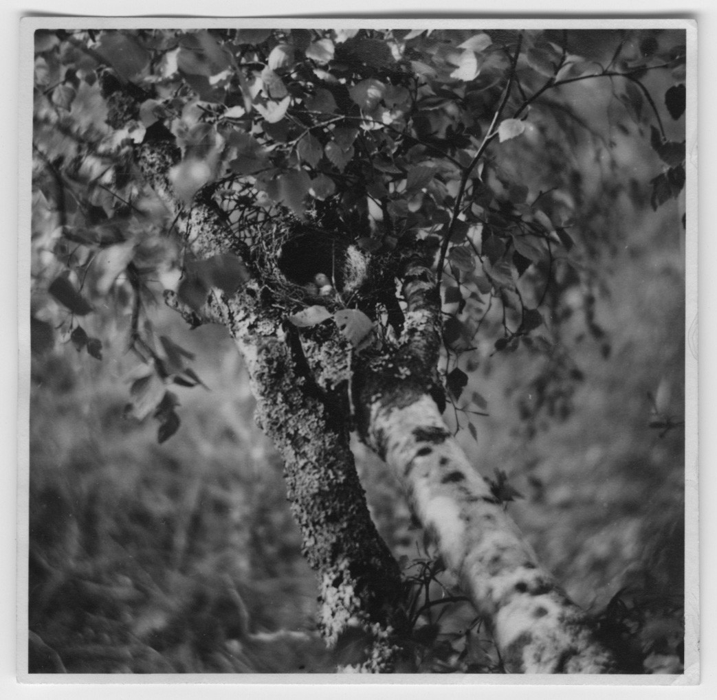 'Enligt bildtext: ''Bo i björk vid ''häxkvast'' i skärningen mellan två grenar. Boet huvudsakligen fodrat med rottågor. 3 ägg.'' :: :: Se även fotonr. 4384:2.'