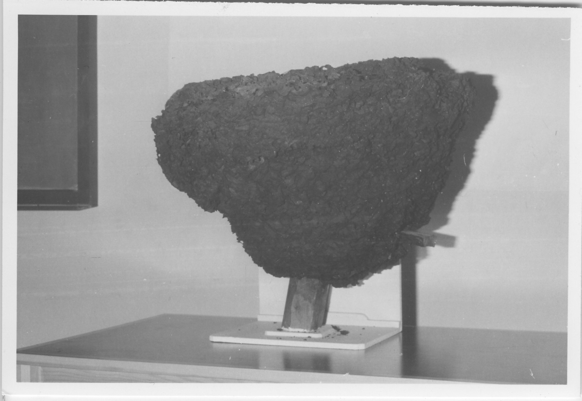 'Foton av jättebo av blanksvart trädmyra. Boet är ett pergamentsbo med storleken, 55 cm högt, bredd 55 cm, längd i horisontalplan 63 cm och vikt 6 kg. :: :: Fotonr. 4723-4728 har samma motiv. :: :: Serie fotonr 4716-4729, se även fotonr. 5086:1-3.'