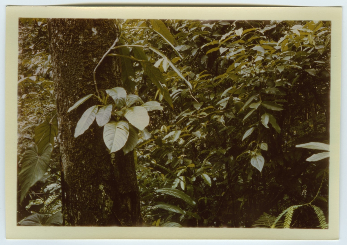 'Färgkopior efter diabilder tagna av Bengt Hubendick 1966 i Amazonas, ett par mil norr om Manaus i Beléms botaniska trädgård och på Trinidad: :: :: Närbild på trädstam. Regnskog. :: :: Ingår i serie med fotonr. 4730-4768.'