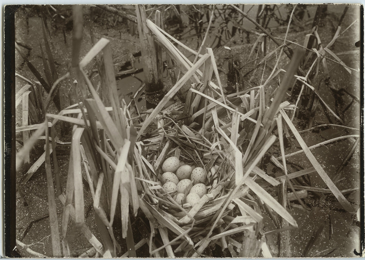'Rörhöna, bo med 9 ägg. Närbild. :: :: Se fotonr. 46-48.'