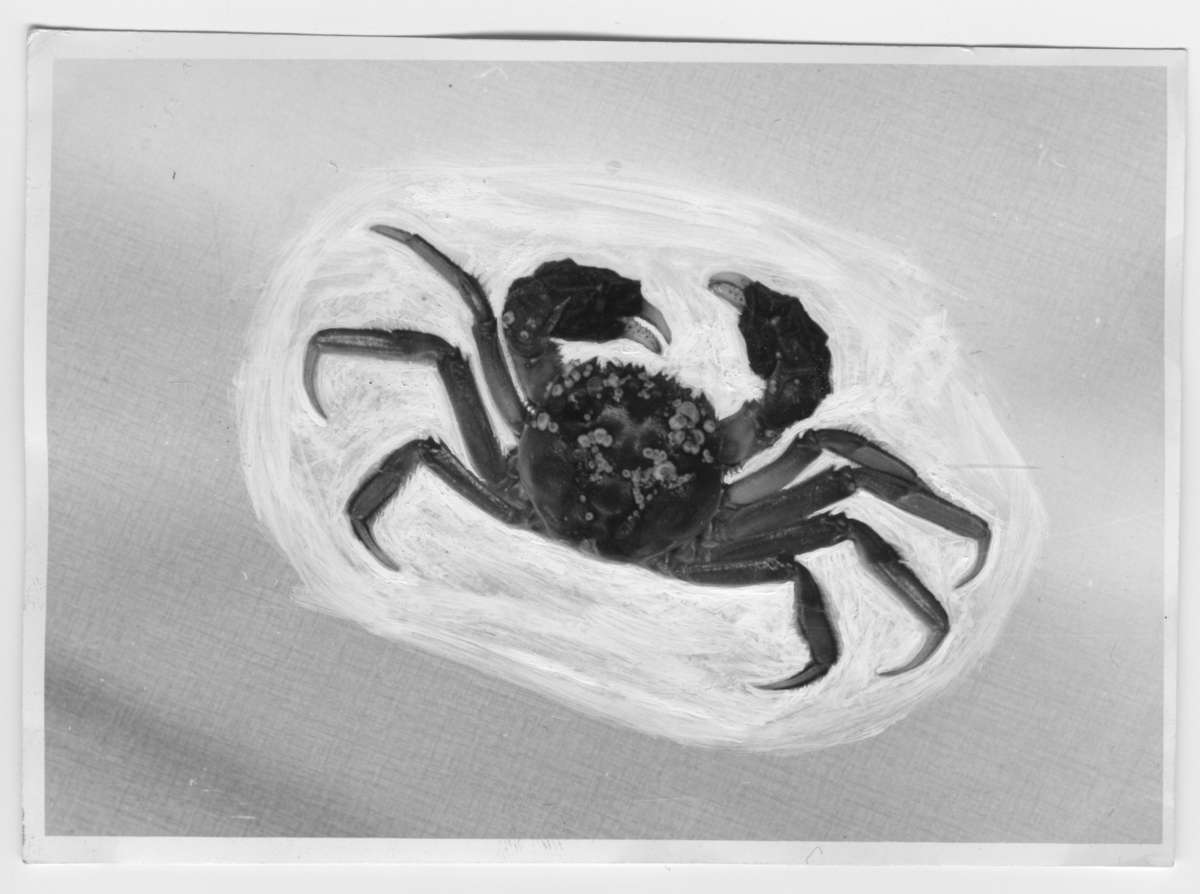 Kinesisk ullhandskrabba, sedd ovanifrån. Maskad bild. Fynddatum: 1960-01-17.