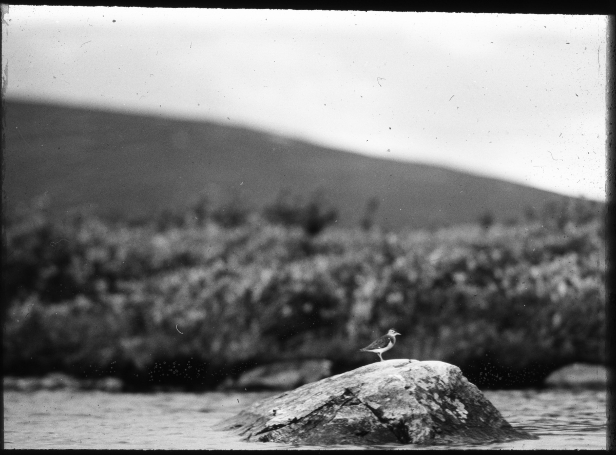 'Bildtext: ''Drillsnäppa.'' Drillsnäppa stående på stenblock alternativt bergknalle ute i vatten. :: :: Ingår i serie med fotonr. 5174:1-8, numrerade med bildnr 285-292. Se även hela serien med fotonr. 5155-5174.'