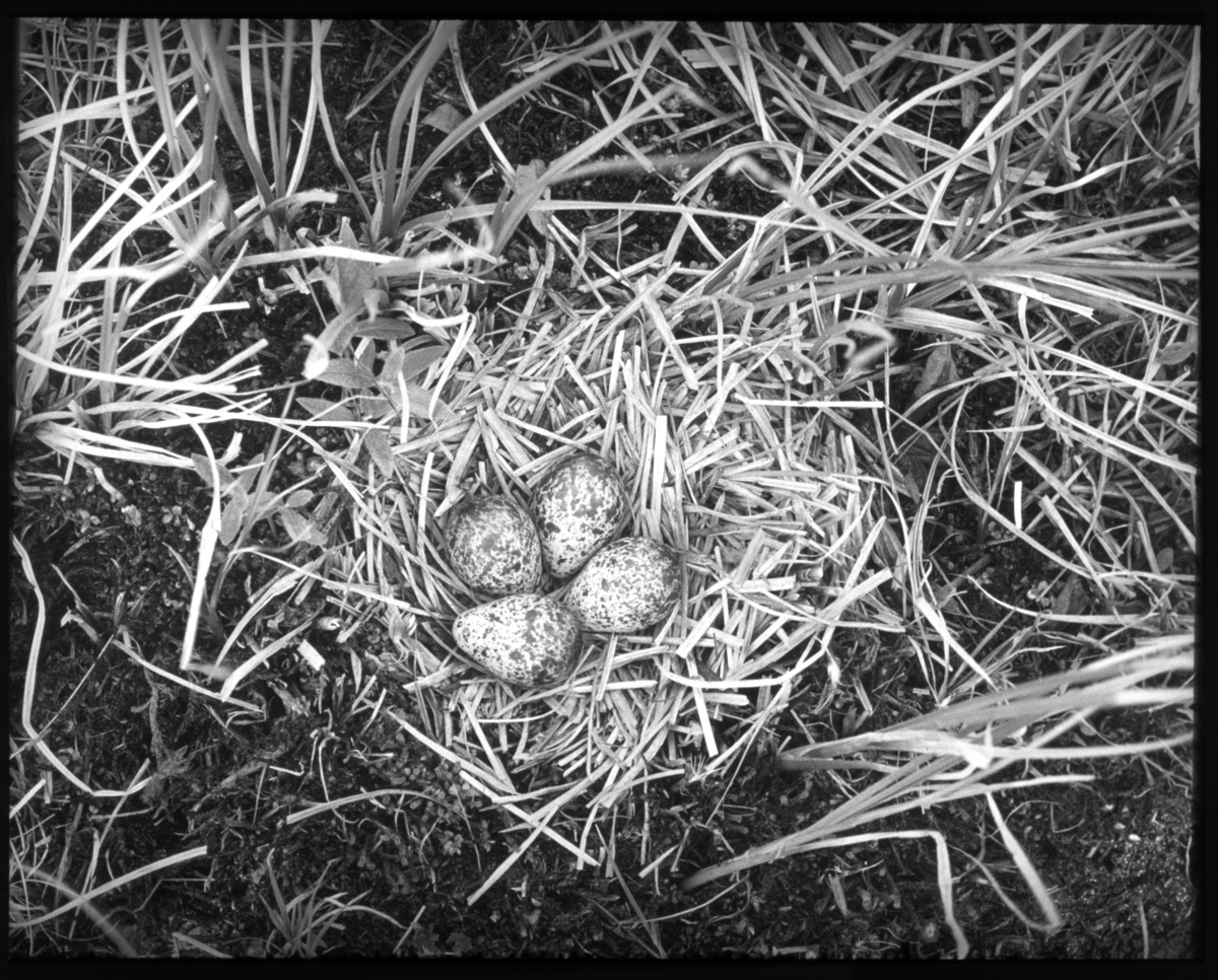 'Bildtext: ''Bo av simsnäppa.'' Bo med 4 fläckiga ägg, simsnäppa. :: :: Ingår i serie med fotonr. 5161:1-9, se även hela serien fotonr. 5155-5162.'
