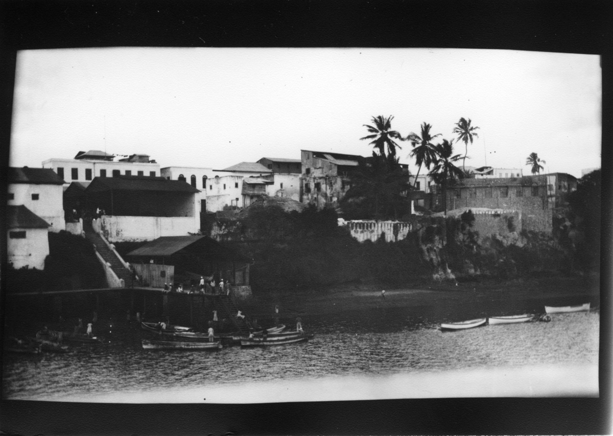 'Diverse fotografier från bl.a. dåvarande Nordrhodesia, nu Zambia, tagna av Konsul Magnus Leijer. :: :: Vy över stad med ett flertal stenbyggnader, trappa, strand, kaj, pir och människor synliga. Fotograferat från vatten där även båtar är synliga.'