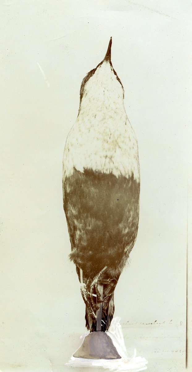 'Strömstare, hona med mörkfläckigt bröst. Fynddatum: 1916-01-29. :: :: Bilden med i Göteborgs Naturhistoriska museums Årstryck 1917 s. 37'