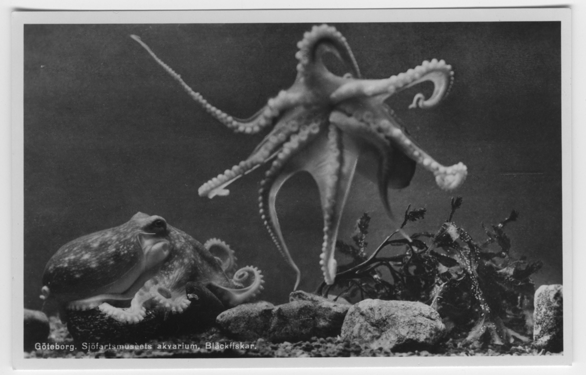 'Bläckfiskar. 1 bläckfisk på botten och 1 sedd från undersidan. :: :: Ingår i serie med fotonr. 1083-1089.'