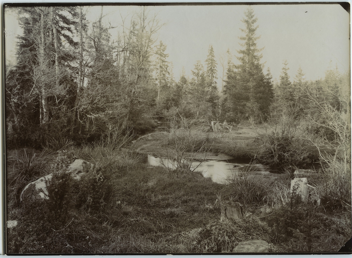 'Skogssnäppans häckningsterräng. Små enbuskar och våtmark i förgrunden, granskog i bakgrunden. :: :: Se fotonr. 122-123. :: :: Ingår i serie med fotonr. 106-127.'
