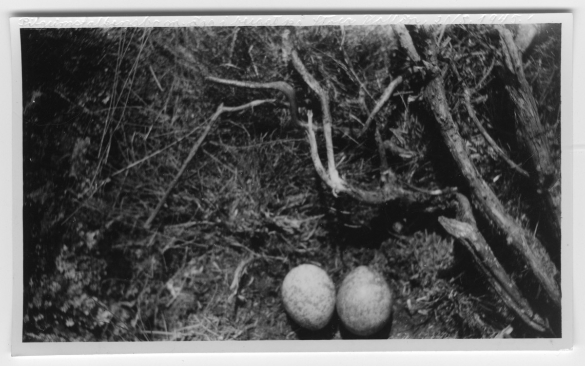 'Pilgrimsfalkbo med 2 ägg, fläckiga. Se även fotonr. 4416:1 samt 4429. :: :: Ingår i serie med fotonr. 4401-4440.'