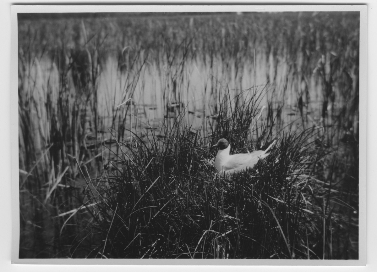 'Skrattmås vid boet. Vy över mosse. Våtmark. :: :: Se serie med fotonr. 1258-1304.'