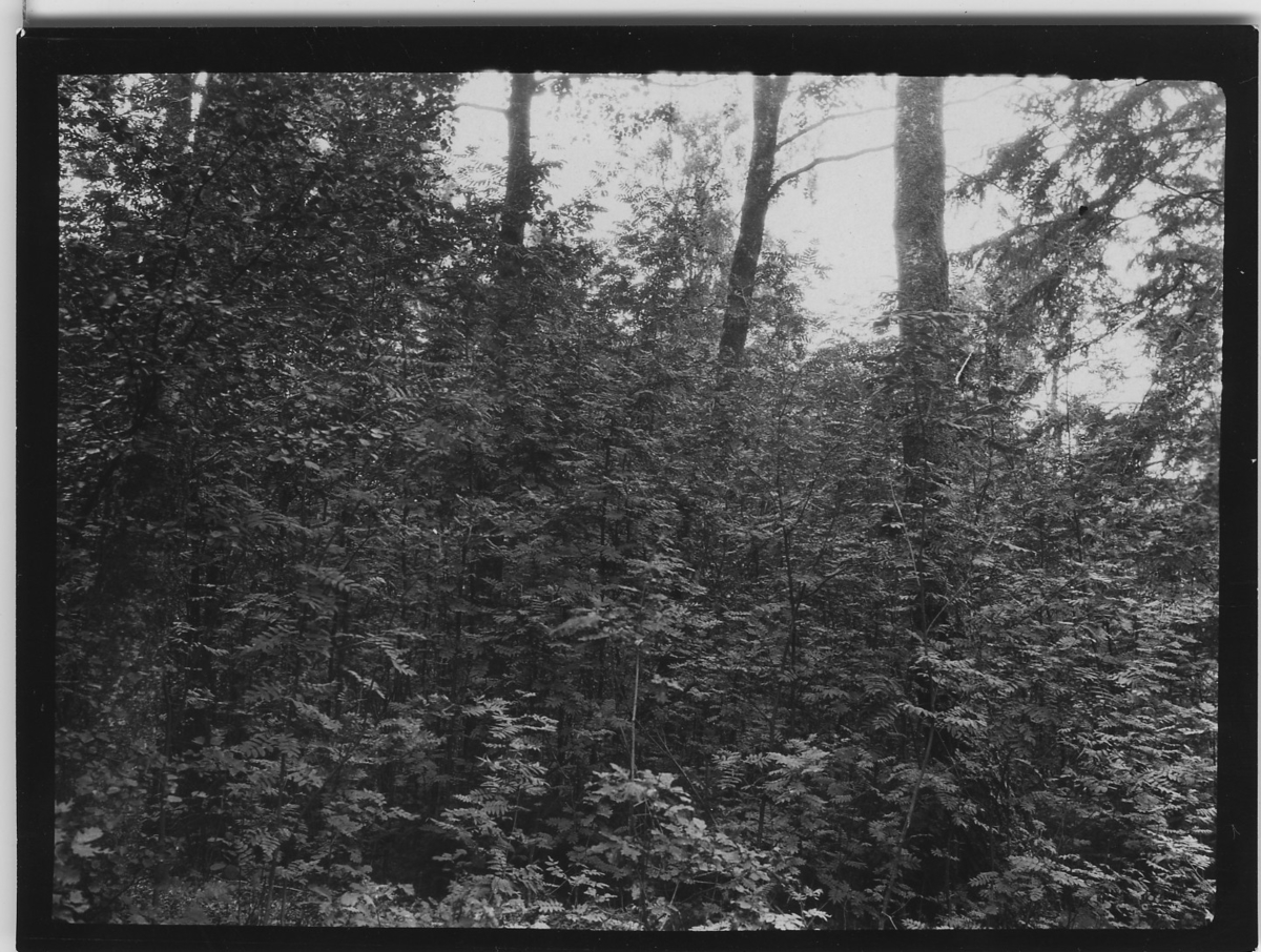 'Tät underväxt av rönn, i furuskog, enligt bildtext ''efter frön utspridda med exkrementerna av koltrastar.'' :: :: Ingår i serie med fotonr. 2347-2399.'