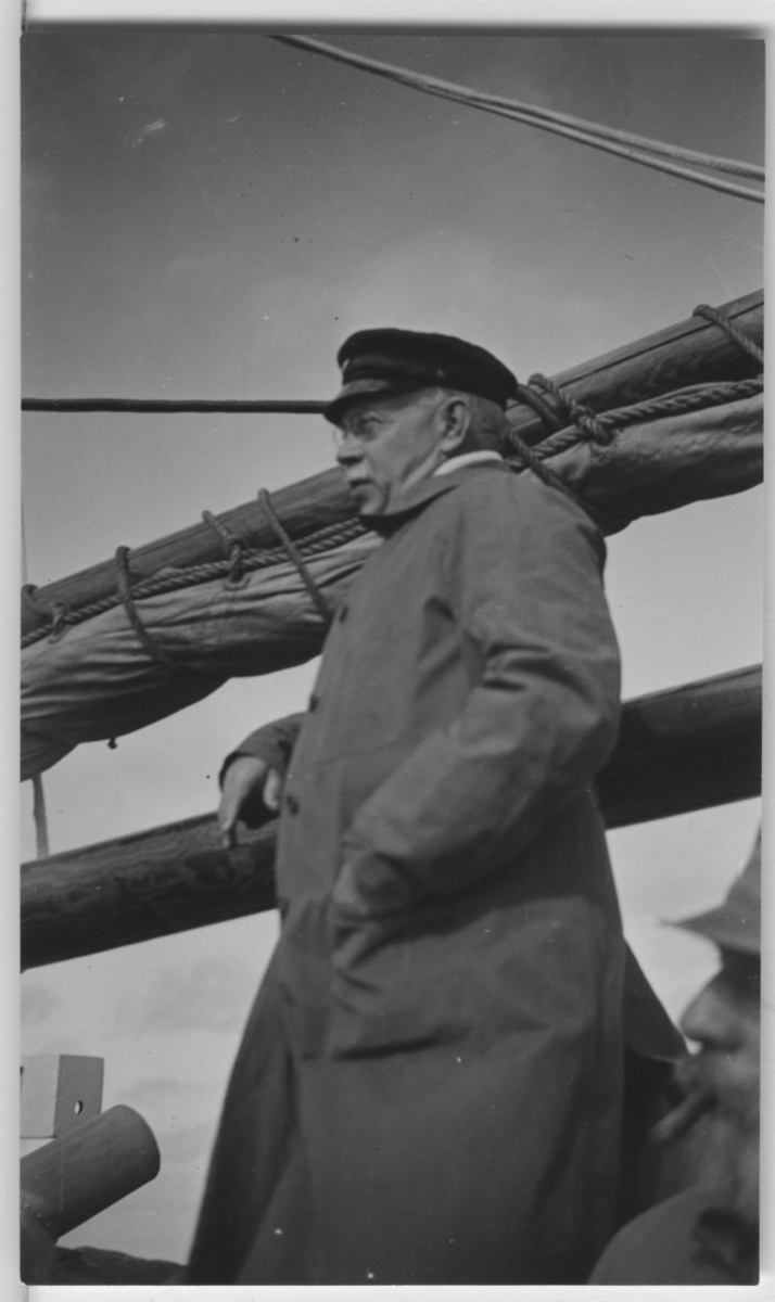 'Göteborgs Biologiska förenings utfärd till Fjärås-Onsala-Nidingen-Malön-Kalvön: :: :: Kapten S. Isberg ombord på båt. :: :: Se fotonr. 2489-2500 och 2501-2515 från samma utfärd.'