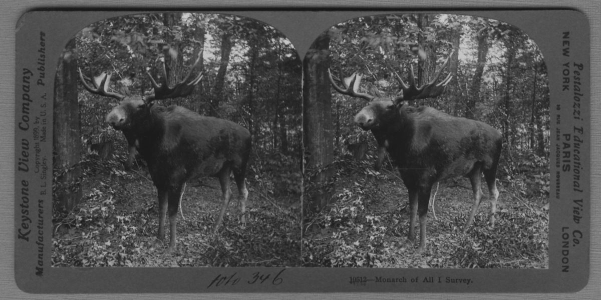 'Älg, närbild. :: :: ''10512 - Monarch of all I survey.'' :: :: Ingår i serie med fotonr. 315-422.'