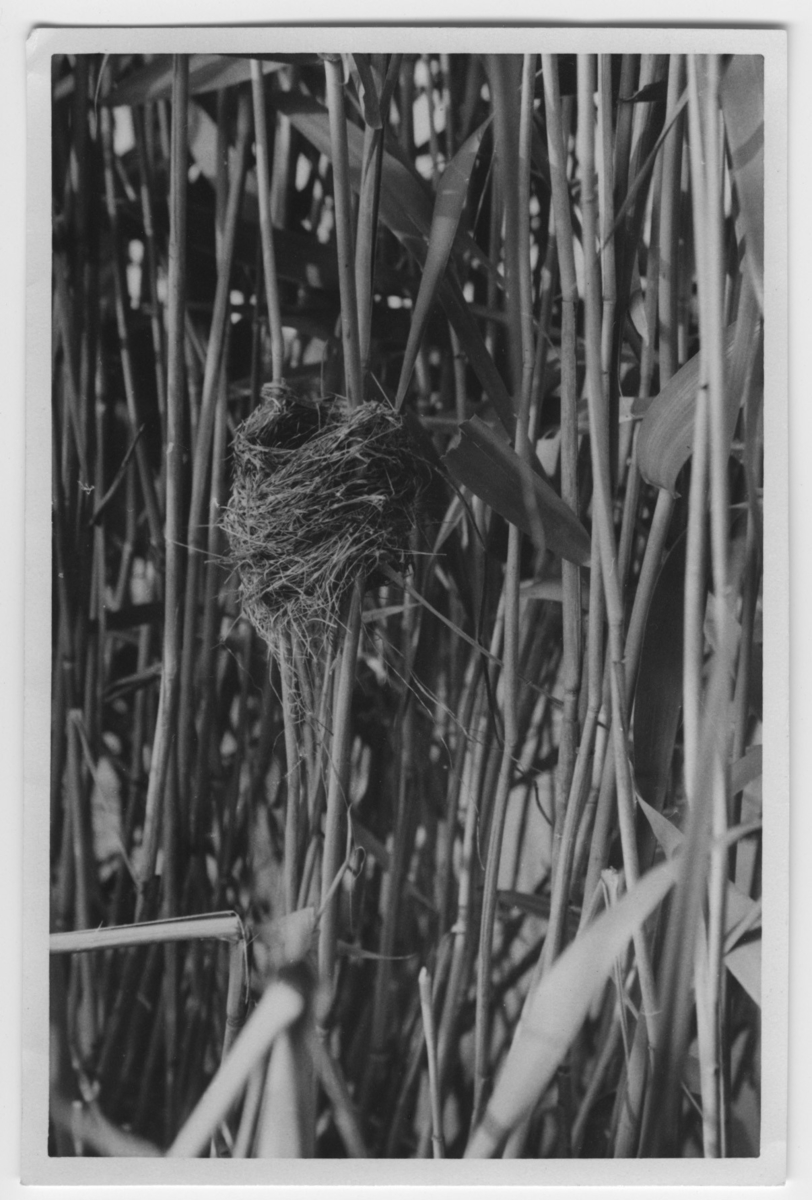 'Rörsångare, bo i vass, närbild. :: :: Ingår i serie med fotonr. 3736-3739.'
