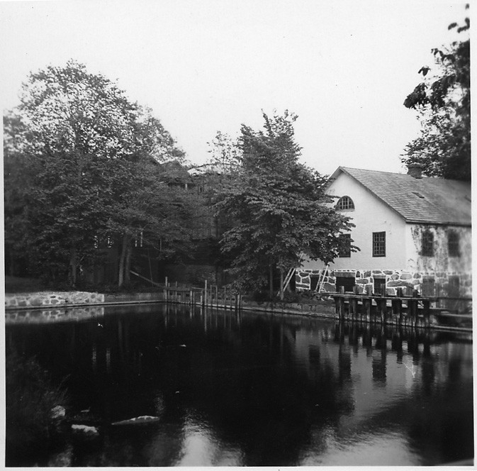 'Biologiska föreningens utfärd till Växjö, Aneboda och Misterhult: :: :: Husby (Huseby) järnverk. Hus med damm i förgrunden. :: :: Se fotonr. 3902-3908, 3909-3923 och 3924-3933 från samma utfärd.'