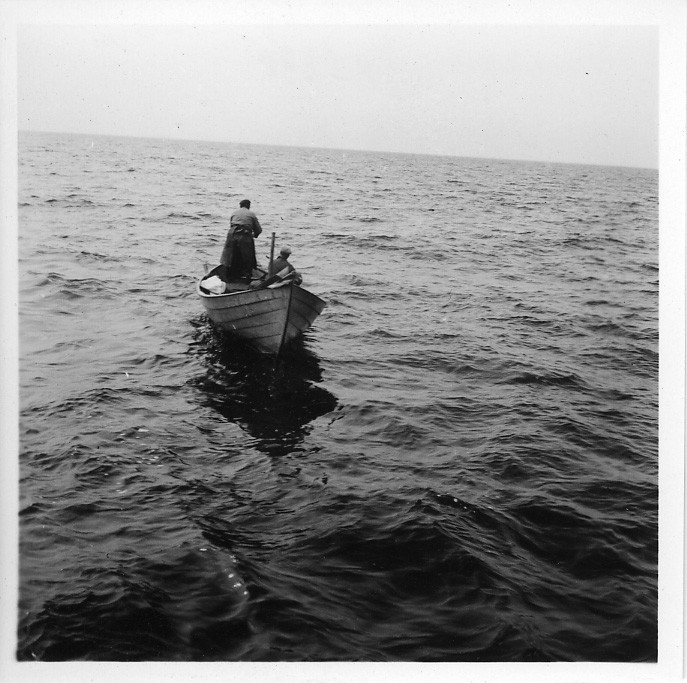 'Från Göteborgs Biologiska förenings Älv- och Vänern-expeditionen: :: :: 2 män i eka. :: :: Ingår i serie med fotonr. 3934-3953 med foton från Göteborgs Biologiska förenings expeditioner.'