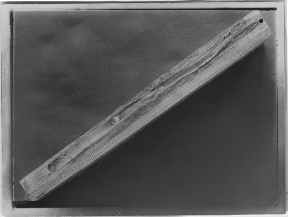 'Djuret frampreparerat in situ, i angripen påle. :: :: Se fotonr. 1420-1422.'