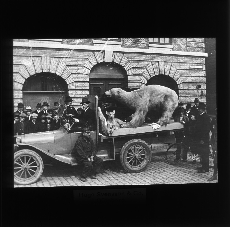 '''Svenska museer'' :: Diaduplikat av bilder i fotoarkivet. :: :: 2 av Göteborgs Naturhistoriska Museums montage, bl.a. en isbjörn, transporteras från det gamla muséet till det nya.'