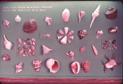'Ingår i en serie med Fotonr. 5419 med Göteborgs Naturhistoriska museums olika vykort genom åren. :: :: ''Naturhistoriska Museet Göteborg, Ett urval snäckor från varma hav, A selection of shells from warmer seas''.,'