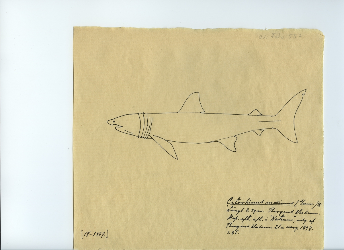 'Avtecknad brugd 8,39 m publicerad 1897 i Naturen utgiven av Bergens museum 21:a årgången s.85. Coll.an. 3396-3400. Fynddatum: 1914-02-06. :: :: Ingår i serie med fotonr. 545-557:7.'
