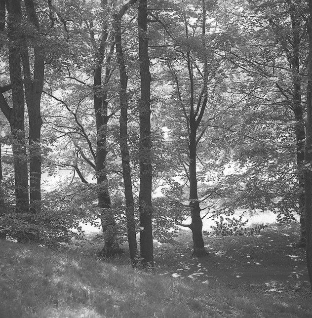 'Ekbacken och en bild på stora blocken utanför entrén. :: :: Vy över ekbacken.'