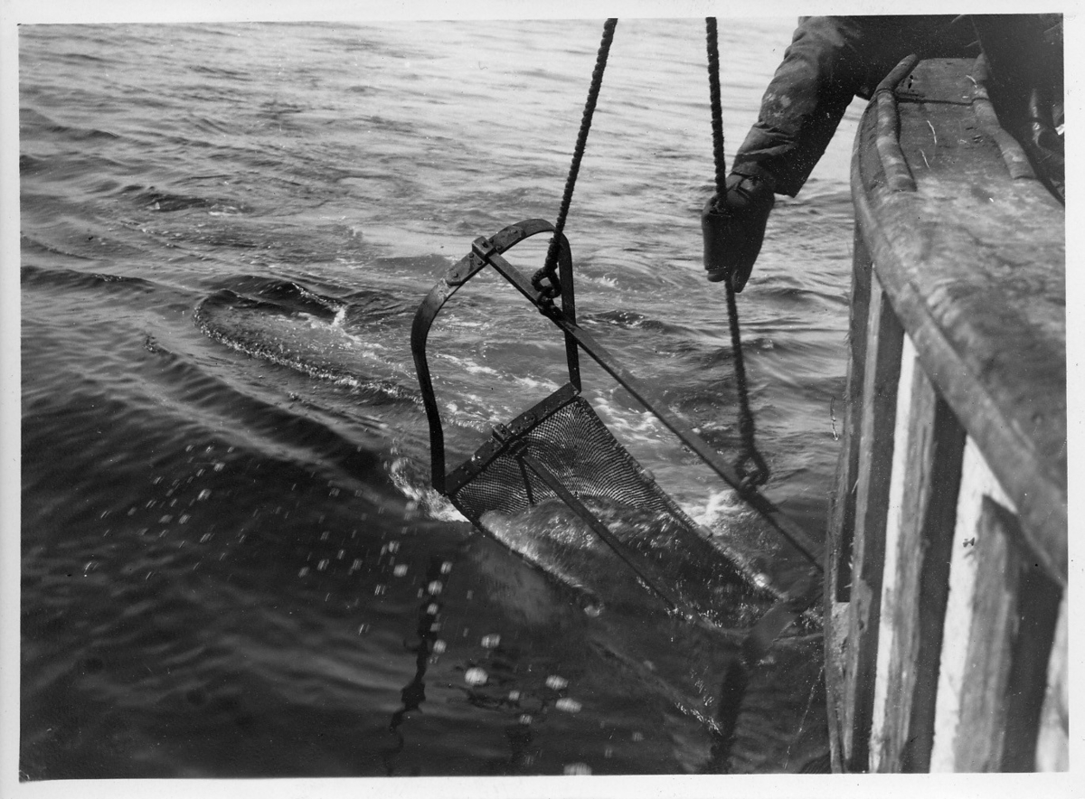 'Akka-expeditionen sommaren 1931: :: :: Trålen tas ombord på Skandia. :: :: Ingår i serie med fotonr. 2182-2234.'