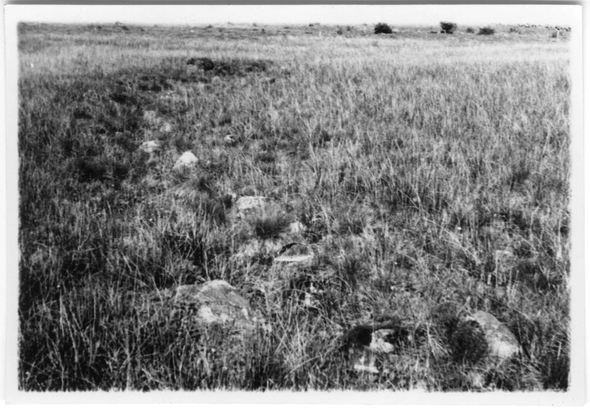 'Vy över fyndplats av bollar, konkretioner. Öppen gräsmark. :: :: Låda 469 i geologisamlingen. :: :: Ingår i serie med fotonr. 6046:1-11.'