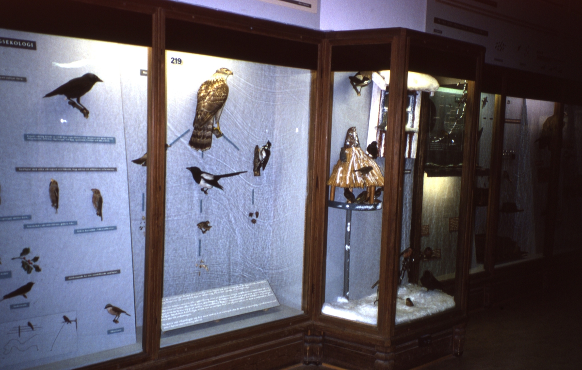 'Montrarna i fågelgången fotograferade före restaurering. :: Svenska fåglar. Näringskedja. :: :: Ingår i serie med fotonr. 6939:1-54.'