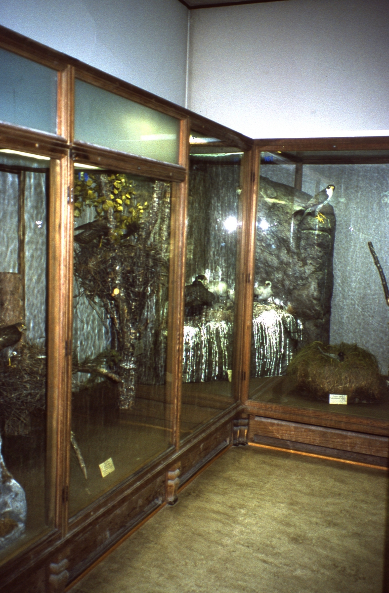 'Montrarna i fågelgången fotograferade före restaurering. :: Svenska fåglar. Biologiska grupper. Rovfåglar. :: :: Ingår i serie med fotonr. 6939:1-54.'