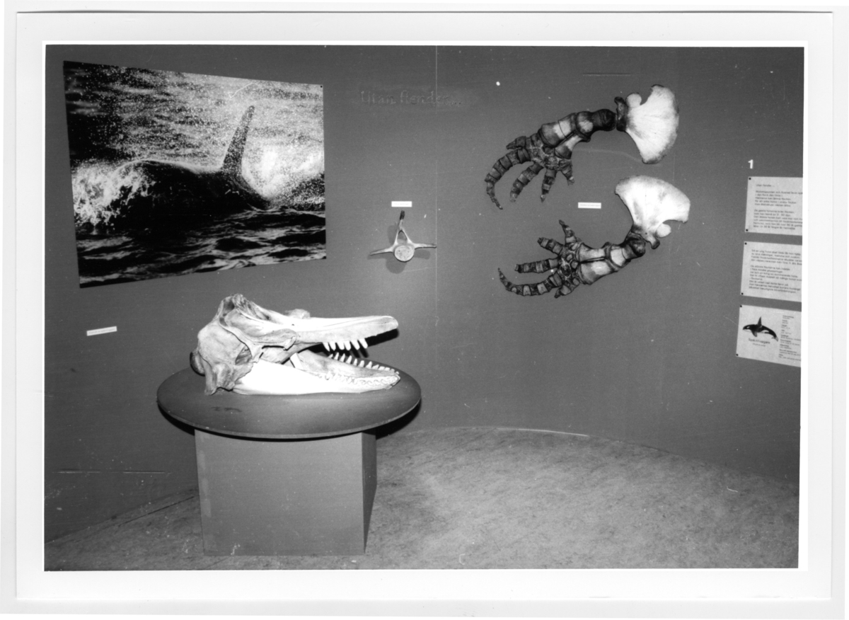 'Bildtext enligt Årstrycket 1999: ''Fig. 8 . Späckhuggaren presenterades med text, bild och spännande skelettdelar.'' Del av valutsällningen med skelettdelar av späckhuggare. :: :: Ingår i serie med fotonr. 6765:1-39.'