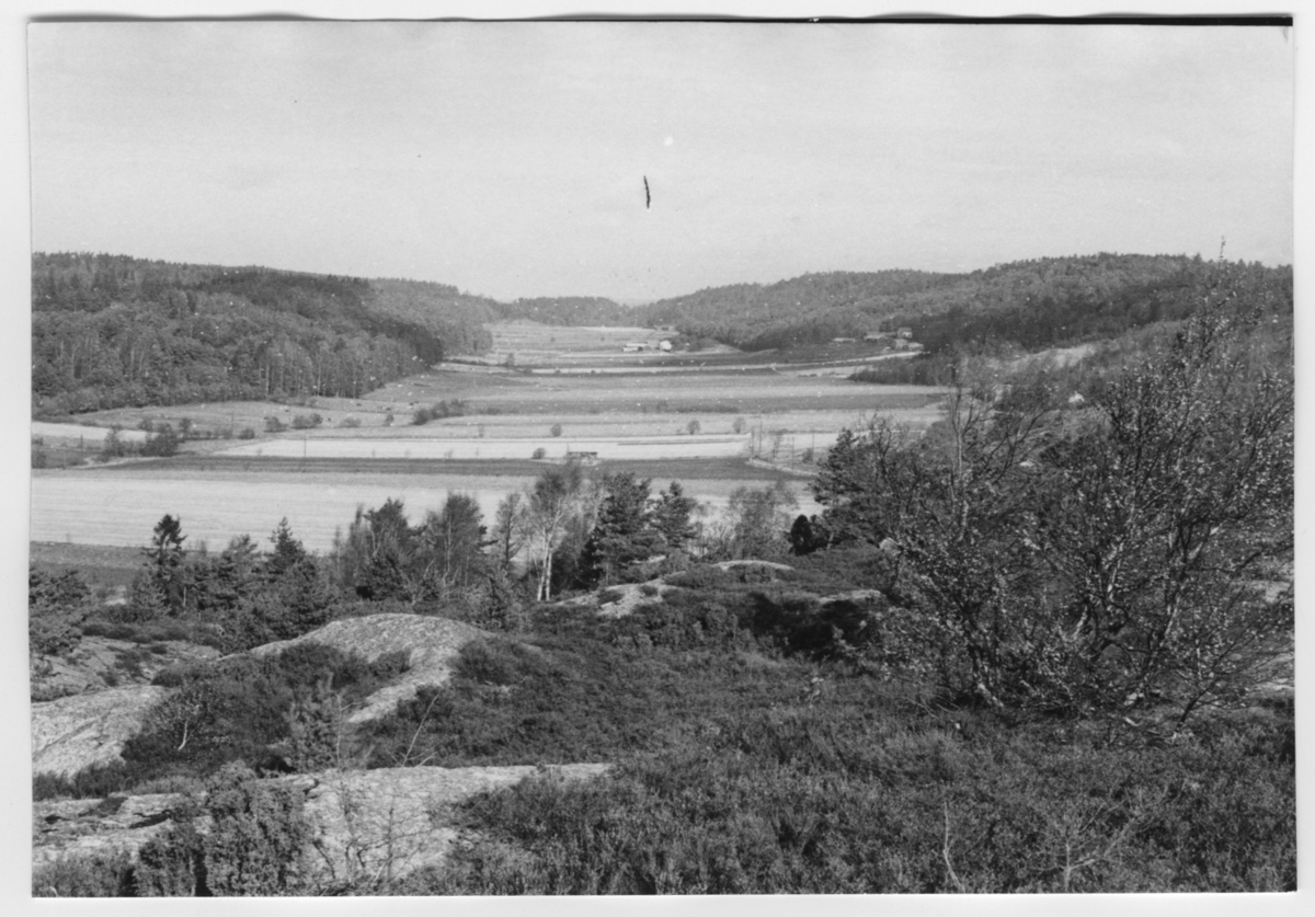 'Bildtext: ''Djupadal-dalgången. Riktning 360.'' :: :: Ingår i serie med fotonr. 6970:1-1125, dokumentation av Hisingens naturgeografi, visande landskapsformerna i stora drag och gjord inför exploateringen av området. Platserna för fotograferingen finns utsatta på karta i skala 1:4000 som finns på Göteborgs Naturhistoriska musem. Fotoriktningen mättes med kompass i gammalgrader.'