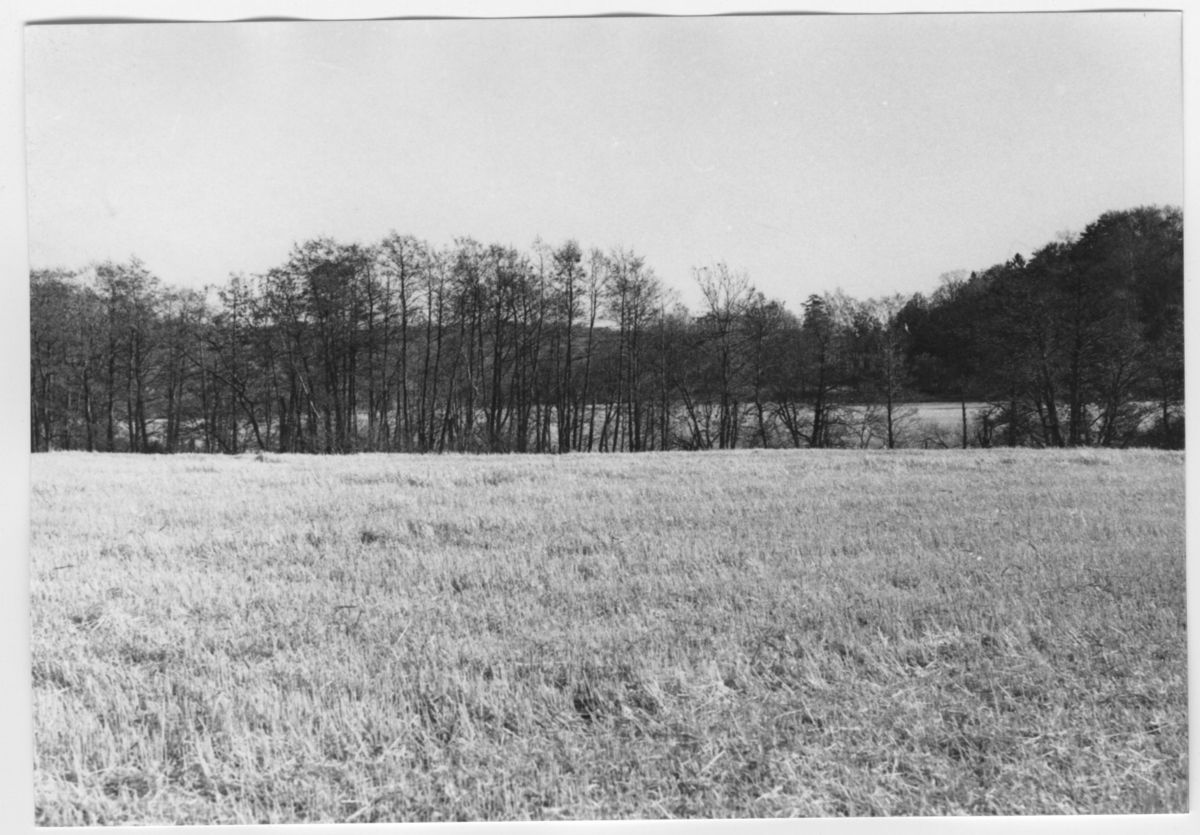 'Bildtext: ''Lerslätt med meandrande å. Riktning 144.'' :: :: Ingår i serie med fotonr. 6970:1-1125, dokumentation av Hisingens naturgeografi, visande landskapsformerna i stora drag och gjord inför exploateringen av området. Platserna för fotograferingen finns utsatta på karta i skala 1:4000 som finns på Göteborgs Naturhistoriska musem. Fotoriktningen mättes med kompass i gammalgrader.'
