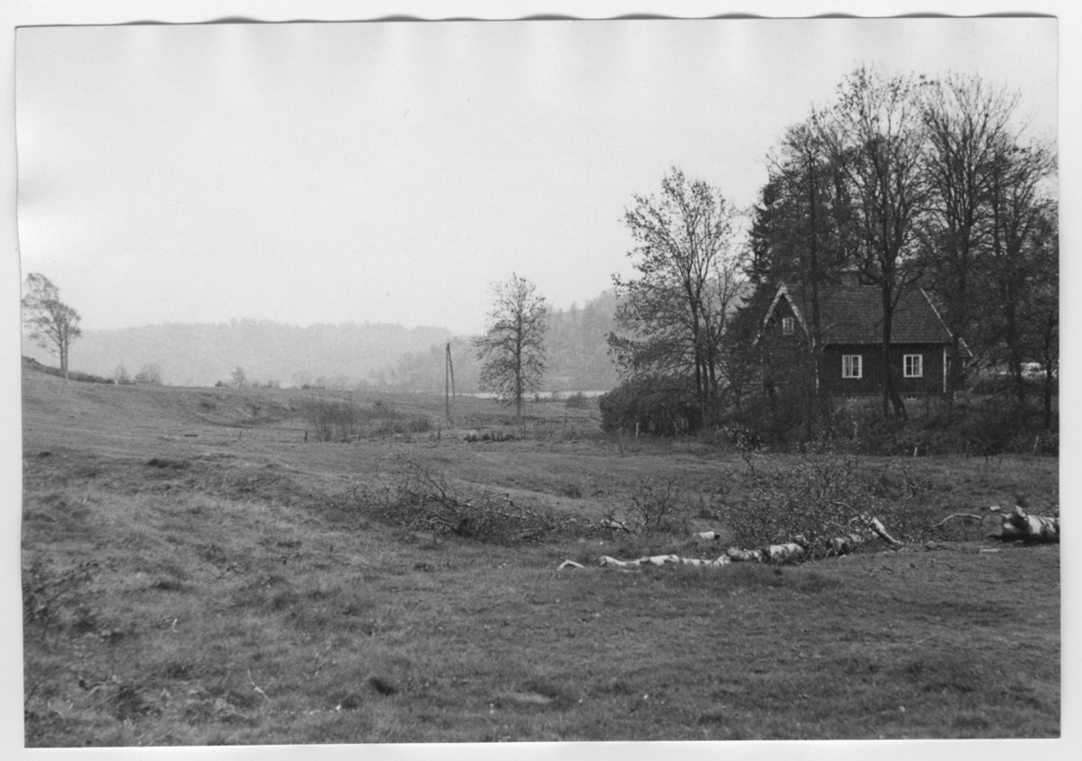 'Bildtext: ''Bäck. Riktning 198.'' :: :: Ingår i serie med fotonr. 6970:1-1125, dokumentation av Hisingens naturgeografi, visande landskapsformerna i stora drag och gjord inför exploateringen av området. Platserna för fotograferingen finns utsatta på karta i skala 1:4000 som finns på Göteborgs Naturhistoriska musem. Fotoriktningen mättes med kompass i gammalgrader.'