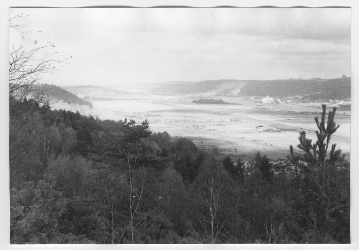 'Bildtext: ''Götaälvdalen. Riktning 9.'' :: :: Ingår i serie med fotonr. 6970:1-1125, dokumentation av Hisingens naturgeografi, visande landskapsformerna i stora drag och gjord inför exploateringen av området. Platserna för fotograferingen finns utsatta på karta i skala 1:4000 som finns på Göteborgs Naturhistoriska musem. Fotoriktningen mättes med kompass i gammalgrader.'