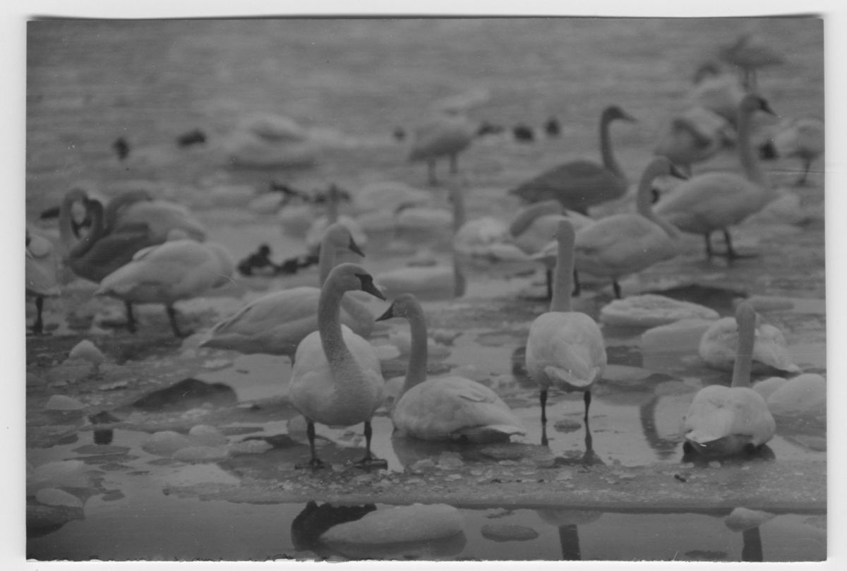 'I Landskrona hamn, svanar på isen. :: :: Se fotonr. 1358-1368, 1430, 2544-2545 samt 945-950, samma motiv samma år. :: :: Ingår i serie med fotonr. 2524-2557.'