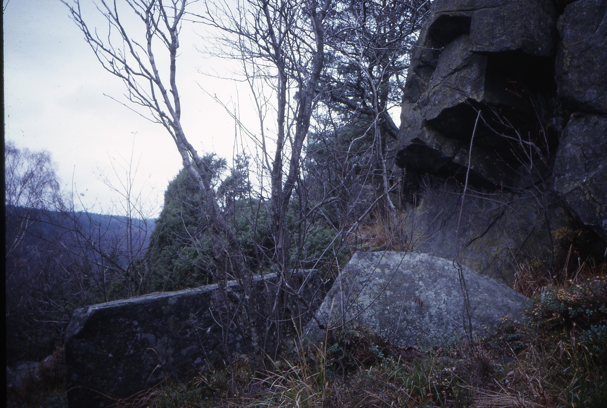 'Bildtext: ''Gunnilse, blockras i samhörighet med lärjeskredet''. :: :: Ingår i serie med fotonr. 7028:1-3 med bilder från skred och ras i Gunnilse.'