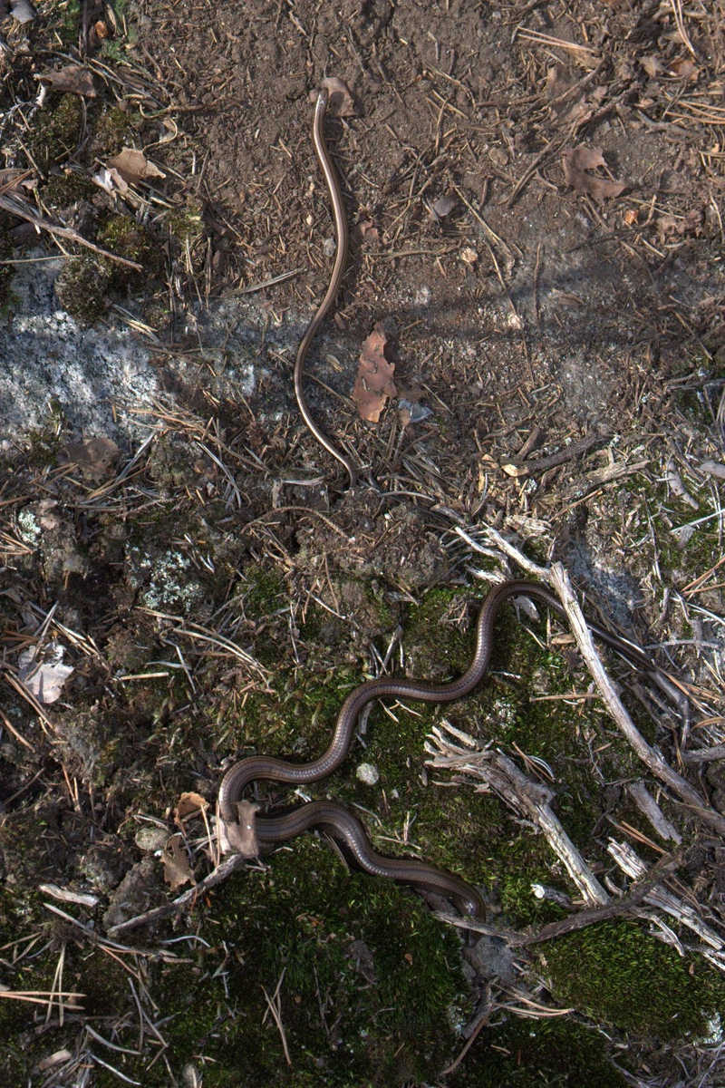 'Bilder från Rambomosse, tagna under arbete med inventering av hasselsnok vid Rambomosse och Hålsjöområdet: :: :: Närbild på 2 kopparödlor (ormslå). :: :: Ingår i serie med fotonr. 7075:1-42. Bilderna tagna i samband med arbetet att skriva en rapport om ''Hasselsnoken vid Rambo mosse''. Rapportens författare, Leif Lithander, Anders Nilsson och Göran Nilson, Göteborgs Naturhistoriska Museum 2007-11-27.'