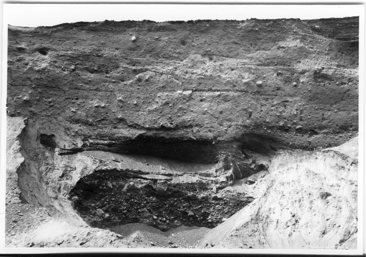 'Detaljbild av vägg i grustaget, veck. Bildtext: ''Dösebacka.'' :: :: Ingår i serie med fotonr. 7058:1-32.'