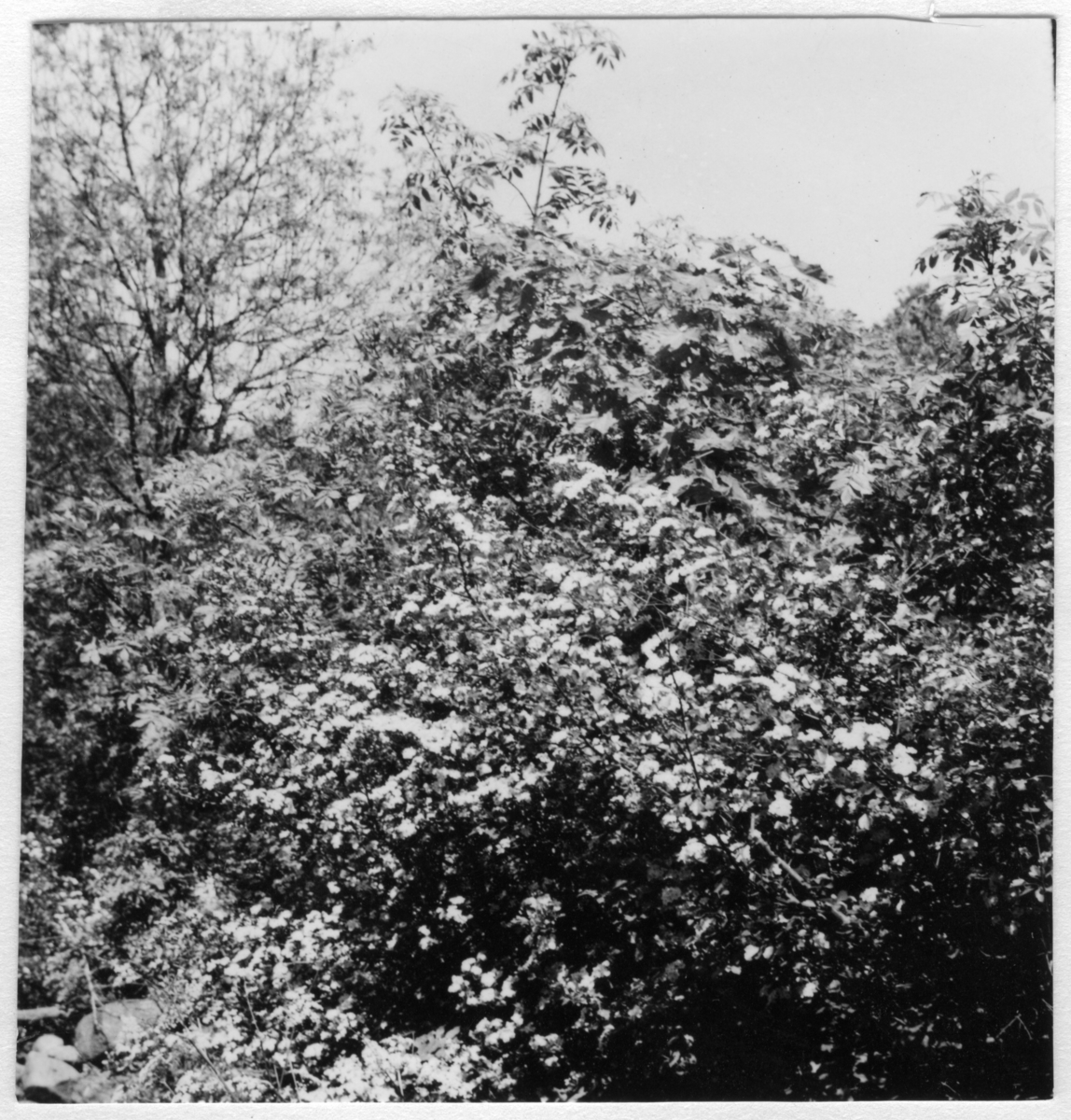 'Bildtext: ''Blommande hagtorn i Halltorphage.'' :: :: Ingår i serie med fotonr. 7037:1-15 med biotopfoton hörande till Fil. dr. Samuel O. Larssons skalbaggssamling från bl.a. Öland och Bohuslän (donerad 1974).'