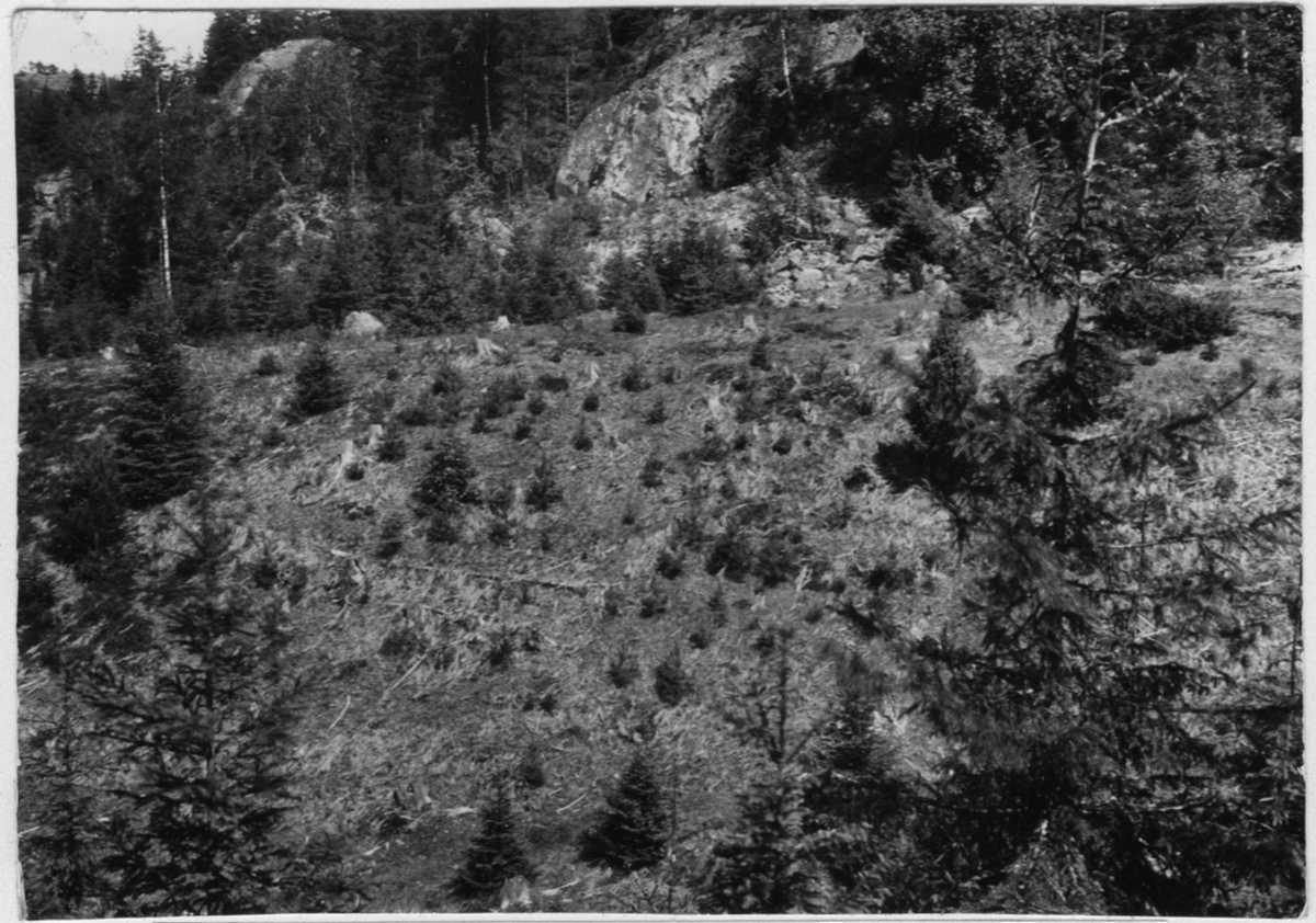 'Bildtext: ''Bild 295. Trots plantering men på grund av betning med kreatur icke nöjaktig skogsåterväxt.'' :: :: Fotonr. 7048:1-26 indelad under rubriken ''Däggdjur, Människor''. Ingår i serie med fotonr. 7046:1-383, 7047:1-33 och 7048:1-67 med bilder från Länsjägmästare John Lindners bildarkiv.'