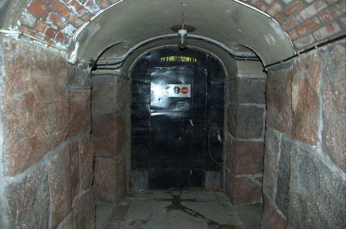 'Ytterdörrar till benkällaren (tillvänster) och benlexikonet (till höger) sedda från innergården. :: :: Fotonr. 7095 består av en bildserie som dokumenterar diverse utrymmen i byggnaden så som kontor, arbetsplatser, arbetsrum, magasin m.m. Bilder tagna före och efter olika ombyggnationer bl.a.'