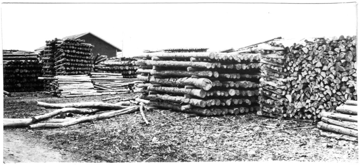 'Bildtext: ''Virke vid Härryda järnvägsstation.'' Travar med staplat virke. :: :: Fotonr. 7046:354-368 indelade som ''Virkesförädling, virkets användning.'' Ingår i serie med fotonr. 7046:1-383, 7047:1-33 och 7048:1-67 med bilder från Länsjägmästare John Lindners bildarkiv.'