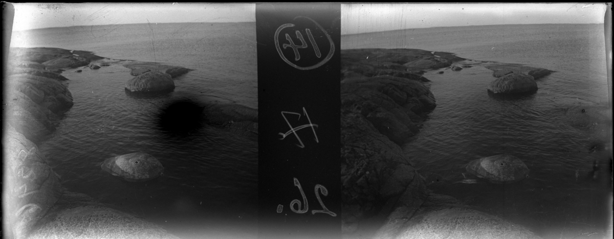 'Bildtext: ''Ilanddriven mina.'' :: Vy ut mot havet, i förgrunden berghällar och ilanddriven mina. :: :: :: Ingår i serie med fotonr. 5262:1-16. Se även hela serien med fotonr. 5237-5267.'