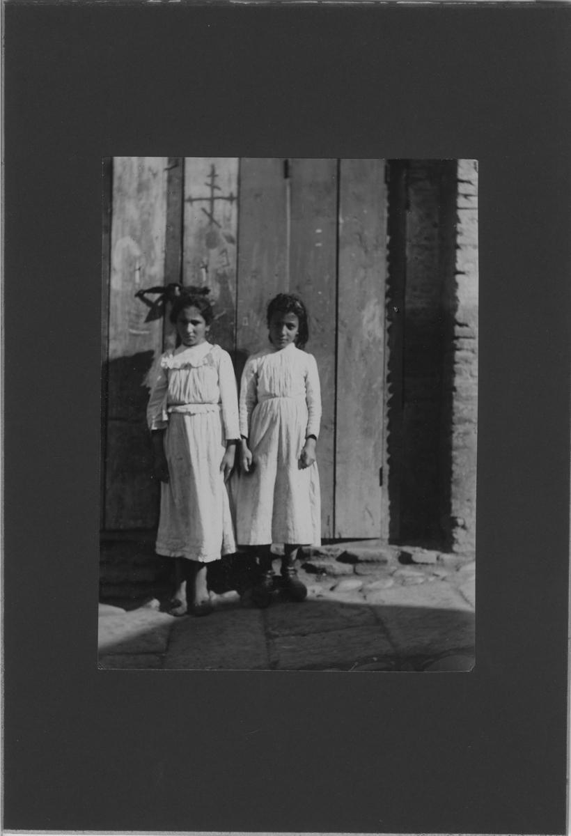 '2 flickor i närbild. Kläder. Klädsel. :: :: Se serie med fotonr. 5272:1-18. Serie fotonr 5269-5292, Stuxbergs resa till Kaukasien, 1897.'