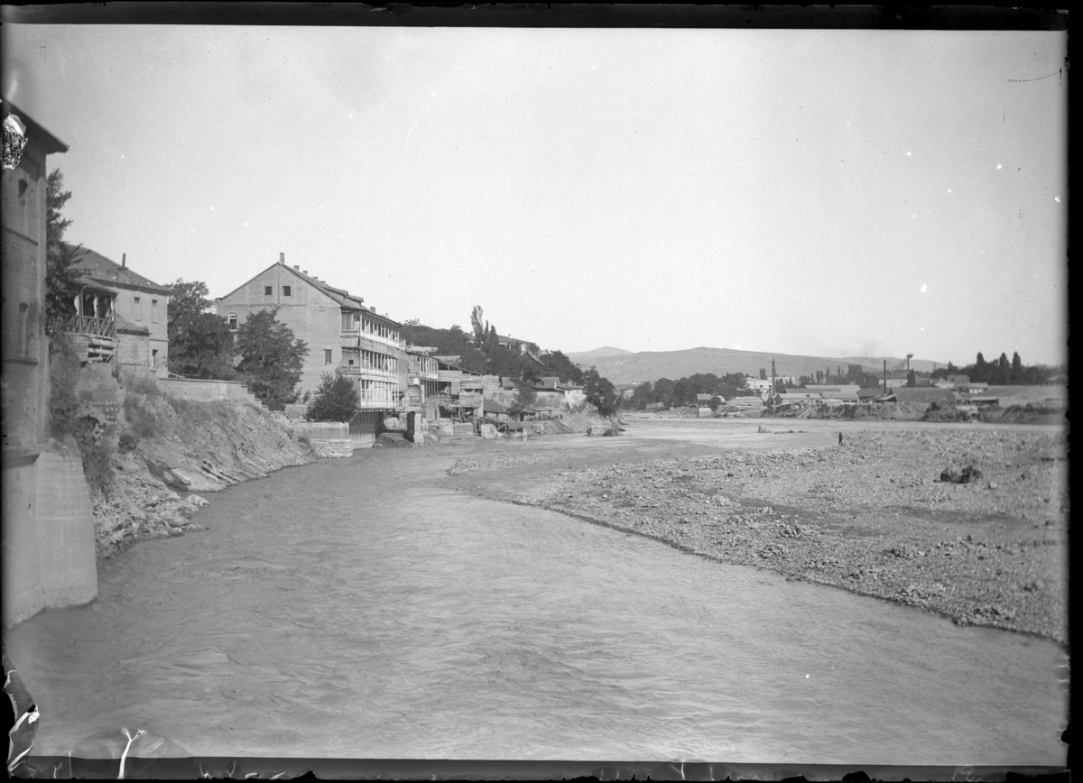 'Del av stad med flod och hus intill dennas flodbädd. :: :: Ingår i serie med fotonr. 5275:1-21. Se även fotonr. 5269-5292 med bilder från Stuxbergs resa till Kaukasien.'