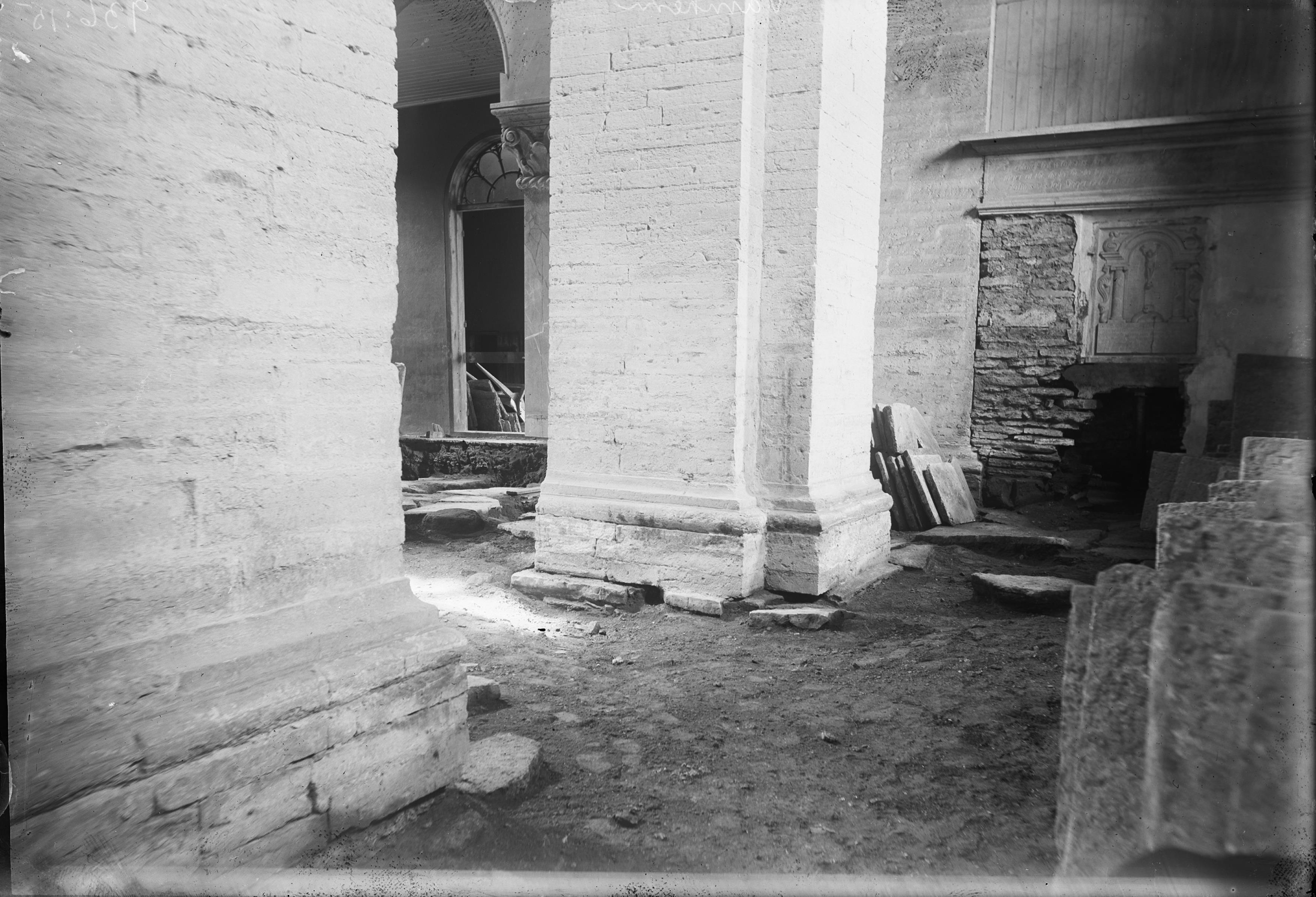Norra sidoskeppet mot sydväst, andra pelaren från väster.