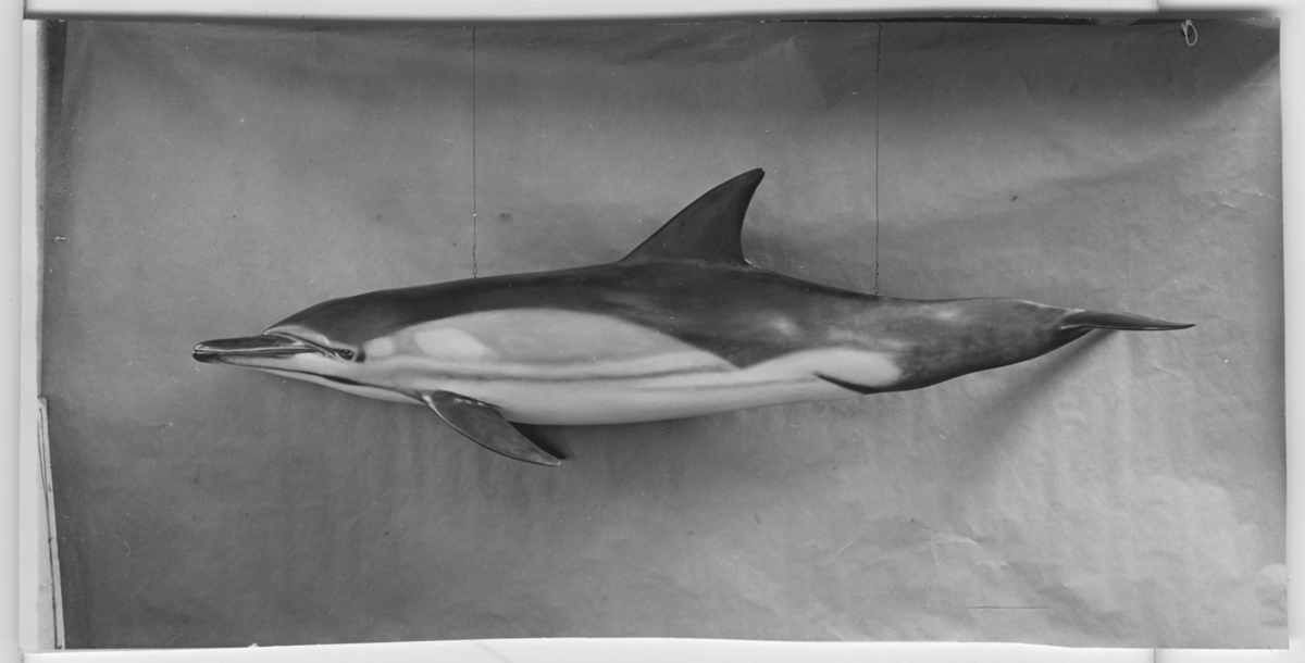 'Delfin, hängande avgjutning utförd av konservator David Sjölander. Fynddatum: 1943-09-19. :: :: Bilden är med i Göteborgs Naturhistoriska Museums Årstryck 1944 s. 11. :: :: Se även fotonr. 4249:1.'